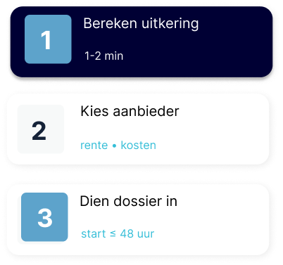 Krijg direct inzicht in uw mogelijkheden. Bereken hoeveel u ontvangt, vergelijk aanbieders en ontdek de beste route voor uw situatie.